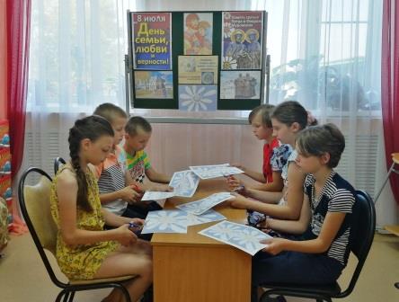 Можно ли с маленькими детьми поговорить о любви, семье, верности? Оказалось, можно, если организовать путешествие на «машине времени». Воспитанники Муромского СРЦН совершили путешествие по дороге в прошлое. Путешествуя по станциям, ребятам было все интересно, любопытно и удивительно. На станции «Историческая» они узнали, что Всероссийский праздник – День семьи, любви и верности – появился благодаря Муромскому князю Петру и его жене Февронии, которые жили в 18 веке и эту семейную пару православные христиане почитают за покровителей семьи и брака. На станции «Выставочная» дети разглядывали рисунки о семье и вспоминали русские пословицы. Заехав на станцию «Творческая», с удовольствием изготовили символ праздника, a символом праздника выбрана ромашка. Этот цветок символизирует нежность и верность. Знакомясь с жизнью святых, ребята пришли к выводу, что основой, стержнем семьи является взаимная любовь, забота и уважение. Именно такие отношения были в семье православных святых – Петра и Февронии.