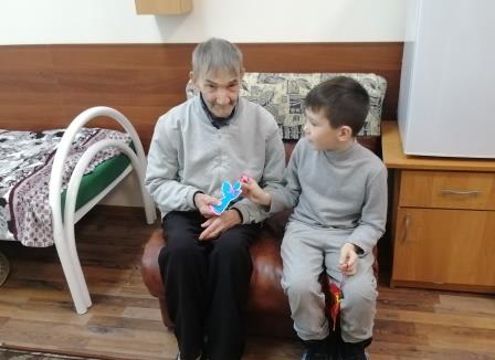 7 декабря 2022 года наши воспитанники также не смоги оставить без внимания своих подопечных и организовали акцию «Из детских рук – частичку теплоты», приуроченную к Международному дню инвалида. В знак глубокого уважения и внимания к людям старшего поколения дети с удовольствием своими руками смастерили ангелов – символы защиты и с пожеланиями крепкого здоровья, благополучия и удачи вручили их. Ребята видели и улыбки, и слёзы радости на глазах пожилых людей, которые подтвердили идею детского желания - доставить людям радость.