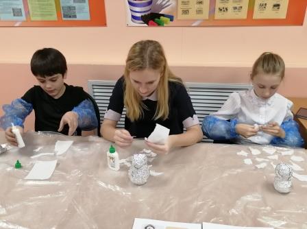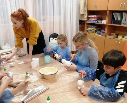В рамках «Семейной программы выходного дня» для детей из малообеспеченных семей и детей-инвалидов на базе отделения профилактики безнадзорности и правонарушений был организован и проведен мастер-класс по изготовлению рождественской игрушки в технике папье-маше.