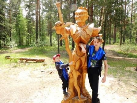 Ярким окончанием праздника стало посещение парка «Сказка» со множеством обитающих там резных скульптур из дерева по мотивам народных сказок и сказок А.С. Пушкина. Дети смогли наблюдать за работой мастеров – участников фестиваля резьбы по дереву «Загляни в сказку».