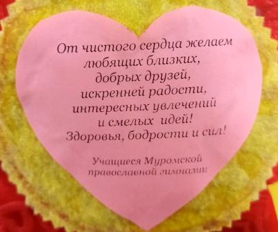 В ГКУСО ВО «Муромский социально-реабилитационный центр» в преддверии Международного дня инвалида стартовала акция «живая» открытка «Подари радость детям». Первыми поддержали акцию учащиеся Православной гимназии преподобного Илии Муромца, подготовив красочные открытки с душевными пожеланиями и сладкие подарки для «особенных» детей, получающих услуги в нашем Центре. Яркие, теплые, душевные «солнышки» стали знаком поддержки, готовности прийти на помощь в любую минуту к тем, кто в этом нуждается.