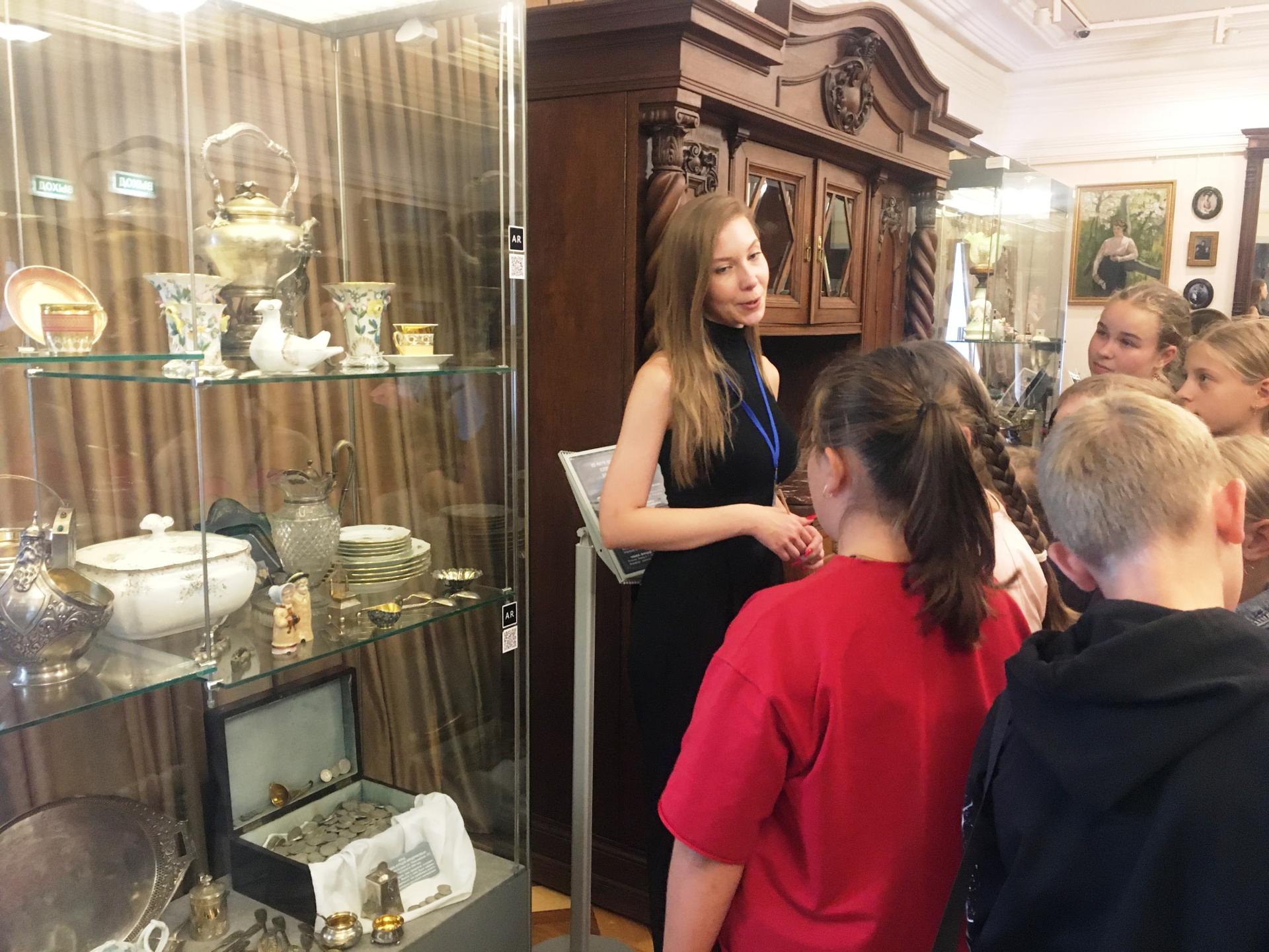 Экскурсовод провела ребят по экспозициям, которые рассказывают об истории повседневности: домашней жизни горожан и их светских увлечениях. В предметном ряду - многочисленные сундуки и сундучки с монетами, шкатулки и ларцы с украшениями, столовое серебро и фарфор, игры и игрушки. Особый интерес у детей вызвала игра «Музейное лото», где они смогли проверить свои знания об услышанном.