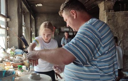 Гостеприимные хозяева провели экскурсию по своей мастерской и очень интересно и подробно рассказали обо всех этапах производства глиняных изделий. Но самое интересное в том, что наши ребята смогли поучаствовать в увлекательном процессе создания собственного изделия. Ох, как непросто из глиняного «теста» сделать посуду! Но с помощь умелых рук и подсказок мастеров получились достаточно интересные предметы: вазочки, горшочки, кружки. Как же приятно держать в руках вещь, сделанную своими руками!