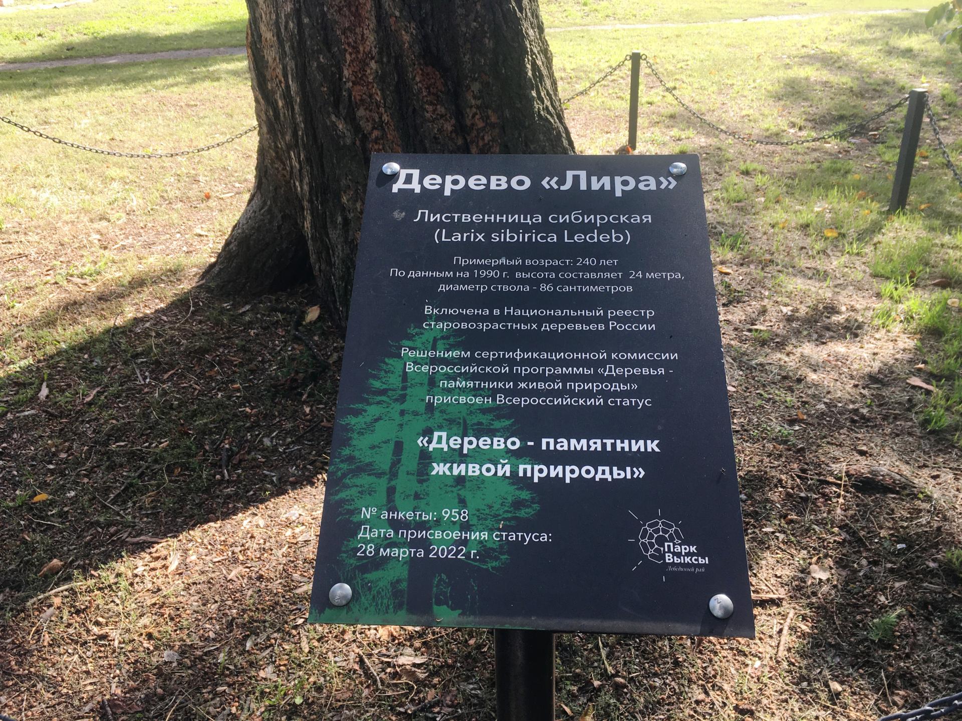 - Дерево «Лира» – уникальный памятник природы, ставший символом парка. Его возраст превышает 200 лет.