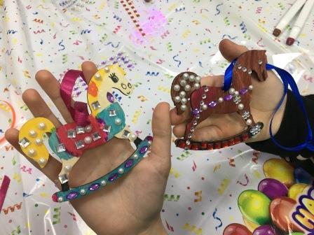 После успешного завершения квеста, ребята перешли к творческой мастерской, где смогли создать своими руками новогодний символ — лошадку-игрушку на елку. Каждый раскрашивал деревянную заготовку, добавляя яркие детали и украшая свои творения стразами.