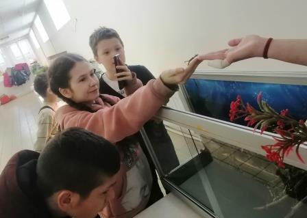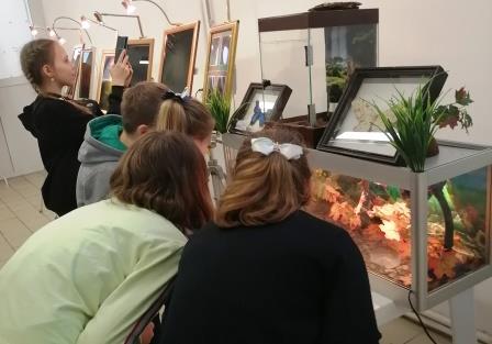 Здесь детям не только рассказали о каждом экспонате выставки, но и разрешили потрогать животных, а также сделать фото на память.