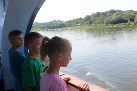 10 августа 2021 года выдался отличный солнечный летний денек, как раз идеальный для речной прогулки. На Муромской пристани ребятам вручили бесплатные билеты и разрешили пройти на судно. Раздался гудок, и наш теплоход стал отчаливать, мы заняли главные места и приготовили телефоны, чтобы запечатлеть прогулку на память. Красота реки, зеленые берега, купола монастырей завораживают. Также ребят заинтересовали катера, пришвартованные к причалу и не совсем обычная древнерусская ладья. Удалось немного понаблюдать, как местные рыбаки ловят рыбу, как кипит работа над строительством нового моста федеральной автотрассы М- 12.