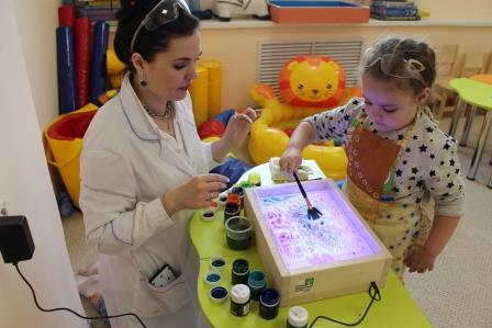 На индивидуальных занятиях по акватерапии специалисты Муромского СРЦН применяют новое оборудование для реабилитации и абилитации детей-инвалидов, приобретенное на средства федерального бюджета. Чтобы окунуть ребенка в мир науки и знаний, запустить воображение юных почемучек, психолог в социальной сфере в обычной игровой комнате создает экспериментальную лабораторию.