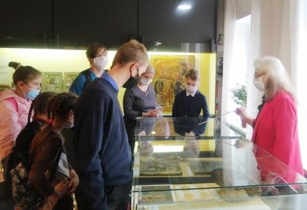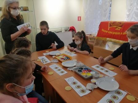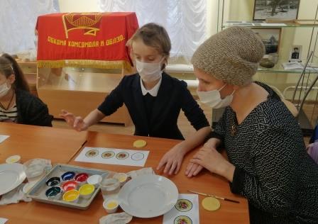 Рассматривая предметы старины и слушая рассказы экскурсовода, дети познакомились с иконописным промыслом, начиная с XVII века по настоящее время. Оказывается, мстерские художники применяли очень интересные техники, специальную краску смешивали с яичным желтком, написание икон делили между мастерами «доличниками» и «личниками», применялись технологии лаковой миниатюры, рисовали на папье-маше. Вдохновившись работами известных мастеров, ребята отправились на мастер-класс по росписи на деревянной заготовке. В результате получились эксклюзивные сувениры, которые дети смогли забрать с собой.